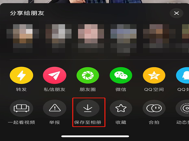 2、在分享工具栏中,点击“保存至相册”,将抖音短视频保存至手机相册中。