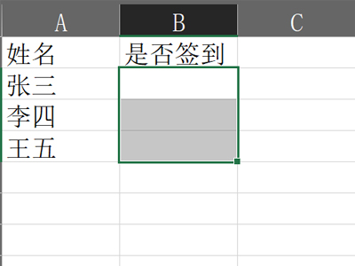 1、打开excel表格,按住鼠标左键选中需要填写方框打勾符号的单元格。