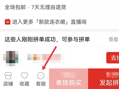 2、在商品主页中,点击左下角的“客服”,进入页面。