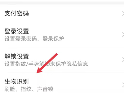 3、进入页面后,在列表中找到“生物识别”选项,点击进入。
