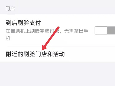 5、点击“附近的刷脸门店和活动”,即可查看附近开通刷脸功能的门店。