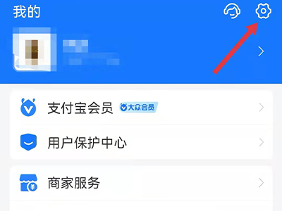 1、打开支付宝app,点击右上角的设置图标,进入页面。