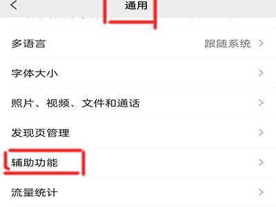 2、点击通用,点击辅助功能。