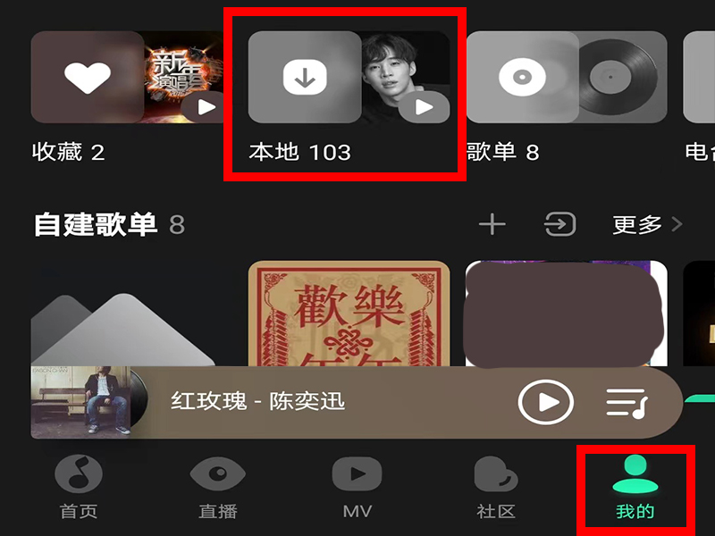 1、打开qq音乐,进入“我的”的界面,在点击“本地”,进入“本地歌曲”界面。