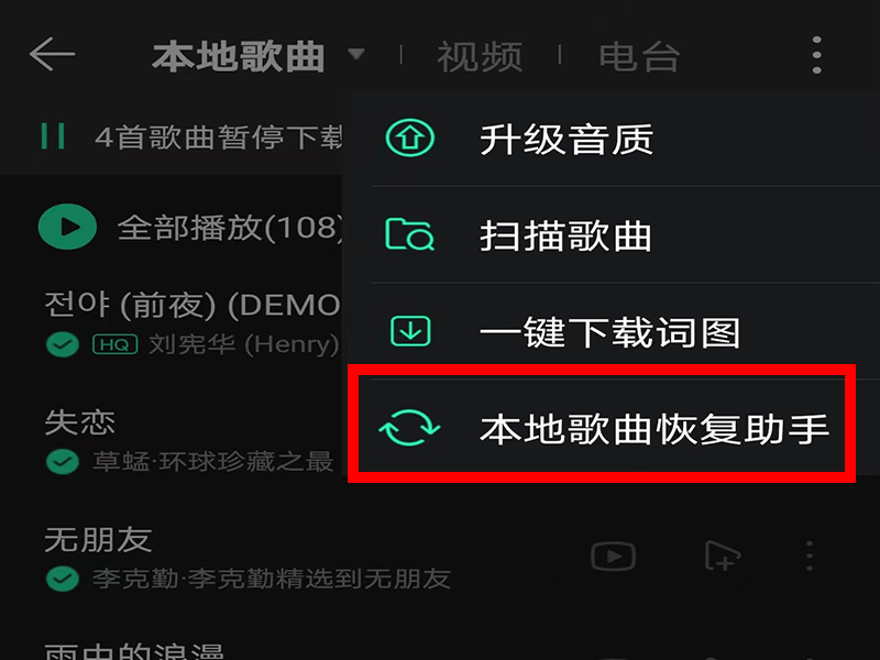 3、在弹出来的功能栏界面中,点击“本地歌曲恢复助手”。