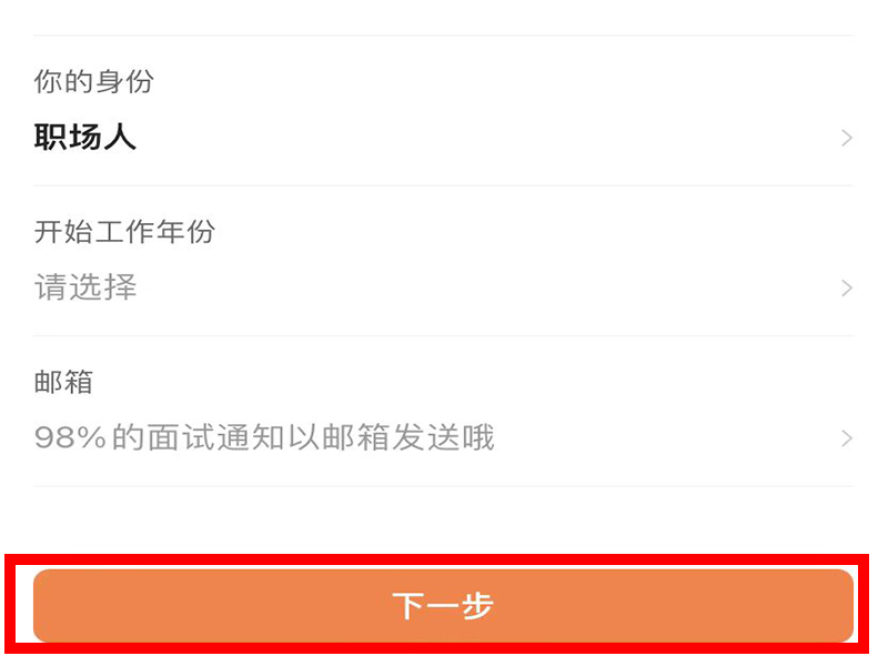 2、进入“登陆”界面,登录账号后,进入信息填写界面,按步骤填写信息后点击“下一步”。