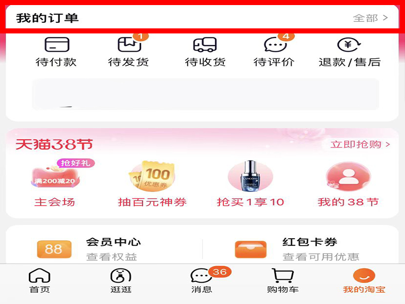 1、打开淘宝,进入“我的淘宝”的界面,再点击我的订单。