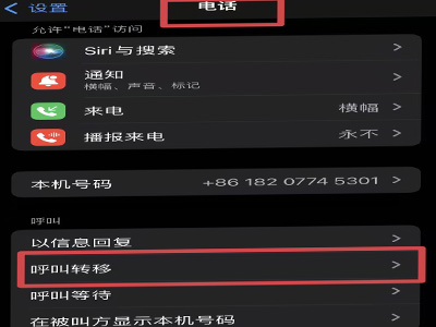2、在设置页面点击“电话”,选择“呼叫转移”选项。