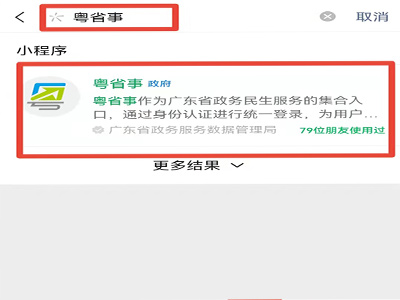 2、点击右上方的搜索图标,输入“粤省事”,点击“搜索”。