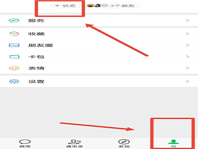 1、打开微信app,切换到“我”的状态,点击“+状态”。