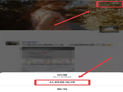 2、在朋友圈页面点击右上角的相机图标,点击“从相册选择”。