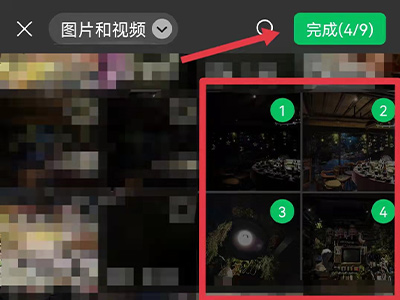 3、勾选4张照片,点击右上角的“完成”按钮。