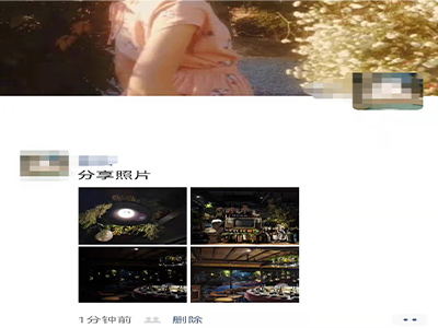 5、返回朋友圈界面,即可看到4张照片2个一排的排列。