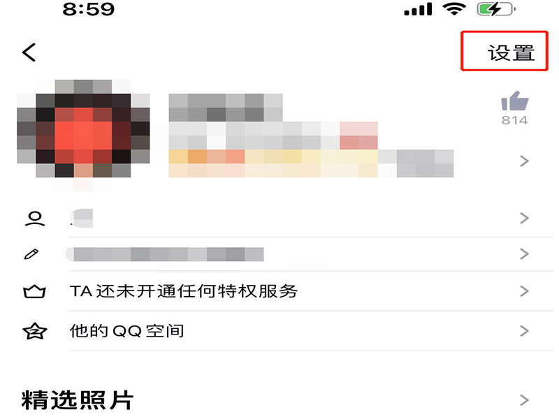 2、在好友的个人界面上,点击“设置”,进入好友设置页面。
