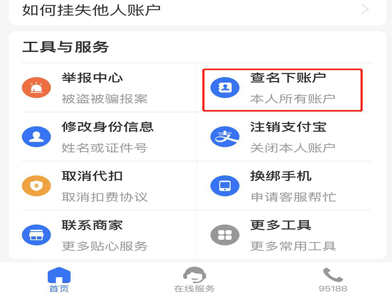 2、在我的客服页面上,点击“查名下账户”,进入身份验证页面。