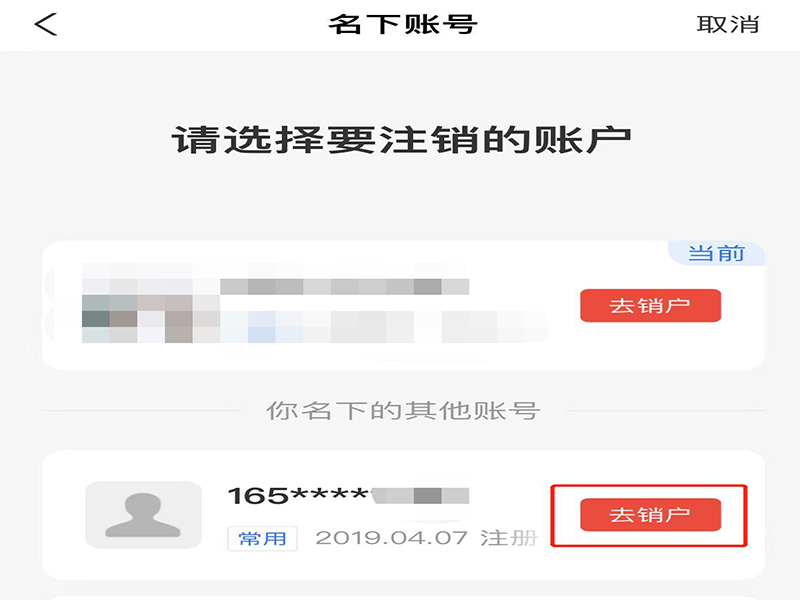 4、在名下账号页面上,选择账号点击“去销户”,进入注销账号页面。