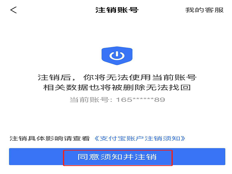5、在注销账号页面上,点击“同意须知并注销”,即可注销账号。