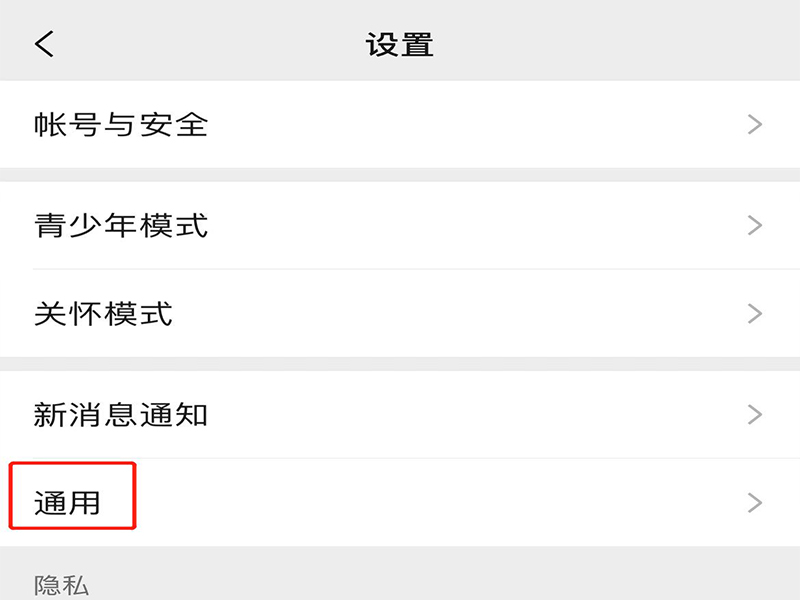 2、在微信设置页面上,点击“通用”,进入通用页面。