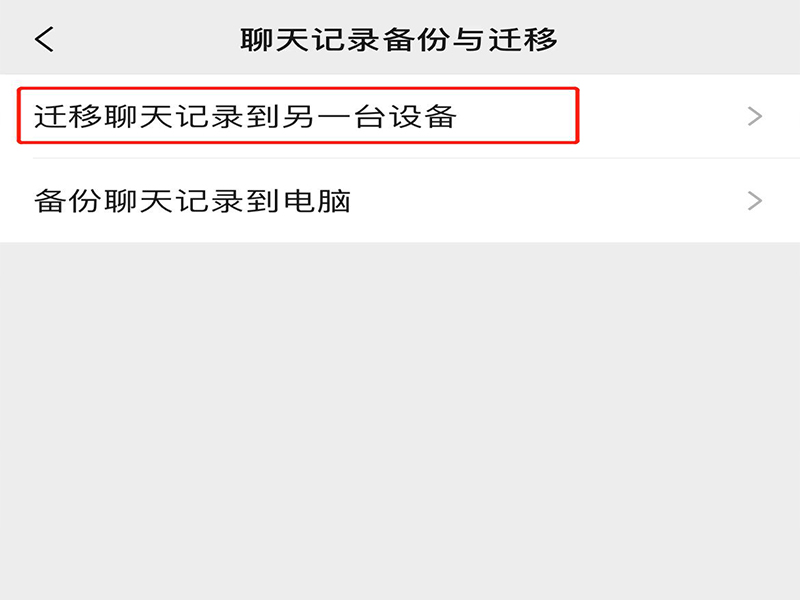 4、在聊天记录备份与迁移页面上,选择“迁移聊天记录到另一台设备”,进入聊天迁移页面。