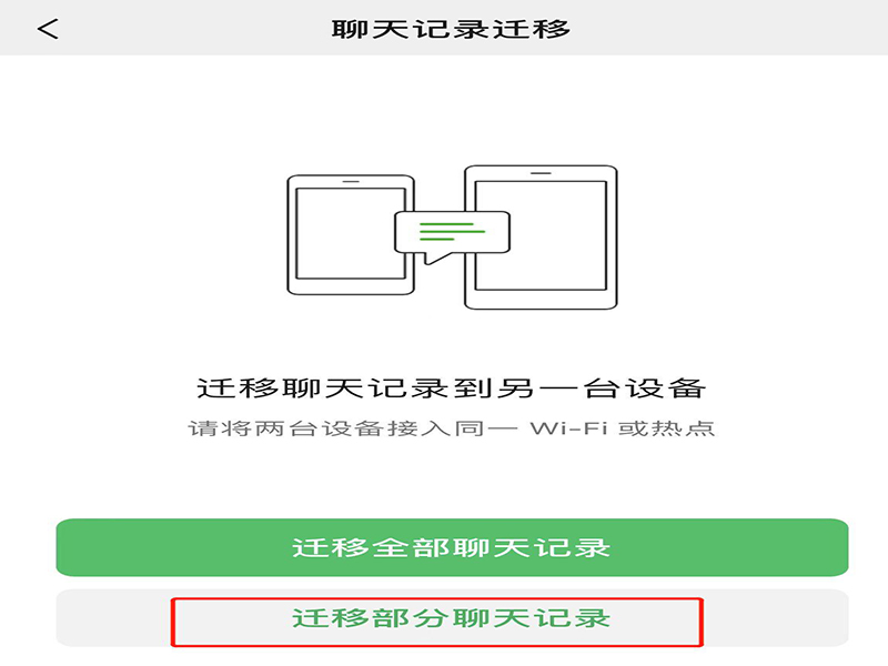 5、在聊天迁移页面上,点击“迁移部分聊天记录”,即可进入迁移部分聊天记录页面进行迁移。