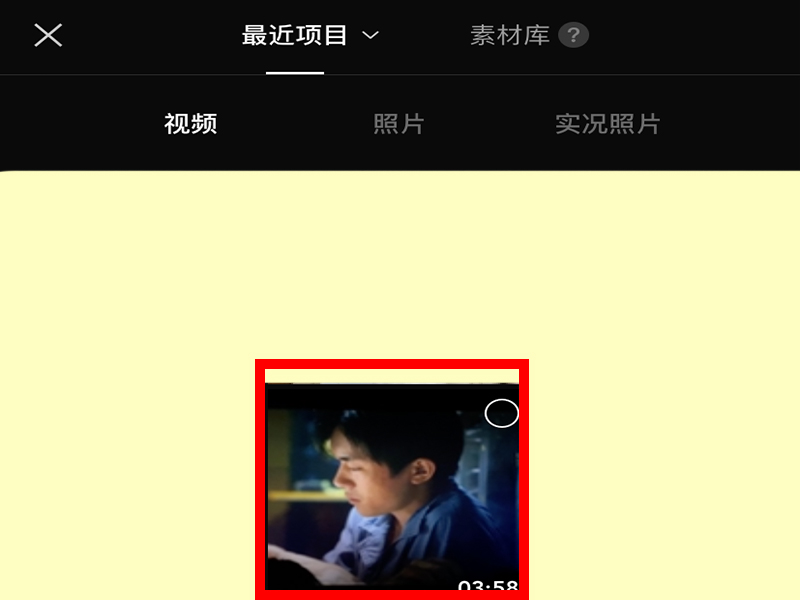 2、进入视频选择界面后,选择要剪辑的视频。