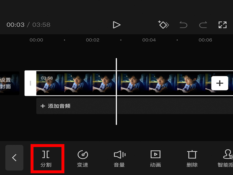 4、进入“剪辑”界面后,点击“分割”,进行视频的裁剪。