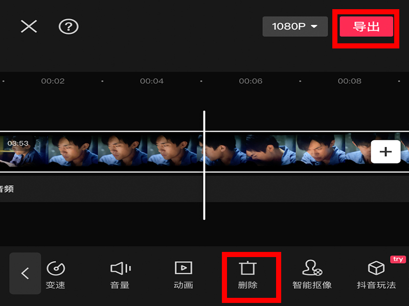 5、“分割”好视频后,将多余的视频片段删除,再点击右上角的“导出”即可。