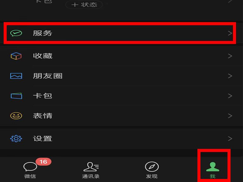 1、打开微信app,点击进入“我”的界面,再点击“服务”。