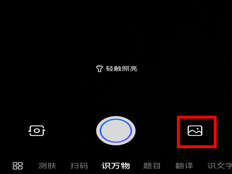 2、进入“拍照”界面后,点击右下角的符号,进入“照片选择”界面。