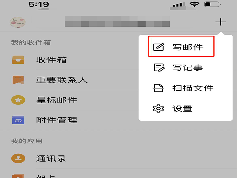 1、打开qq邮箱,点击右上角“+”图标打开工具栏,并点击“写邮件”,进入邮件编辑页面。