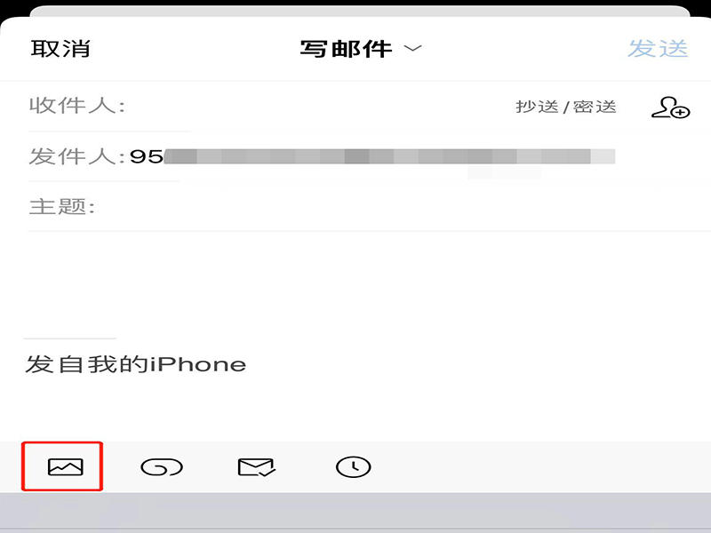 2、在邮件编辑页面上,点击照片图标,进入相册筛选页面。