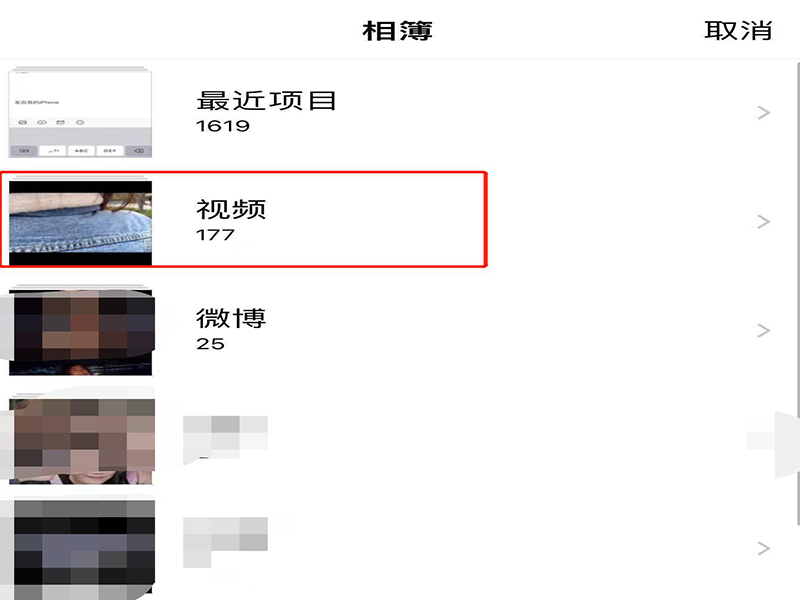 3、在相册筛选页面上,选择视频,进入视频筛选页面。