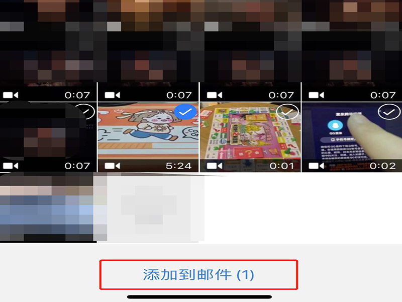 4、在视频筛选页面上,选择发送的视频,点击“添加到邮件”即可将视频添加至邮件编辑页面上。