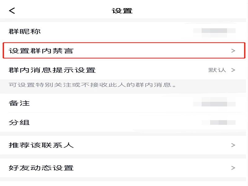 5、在群成员的设置页面上,点击“设置群内禁言”,即可对该成员实行禁言。