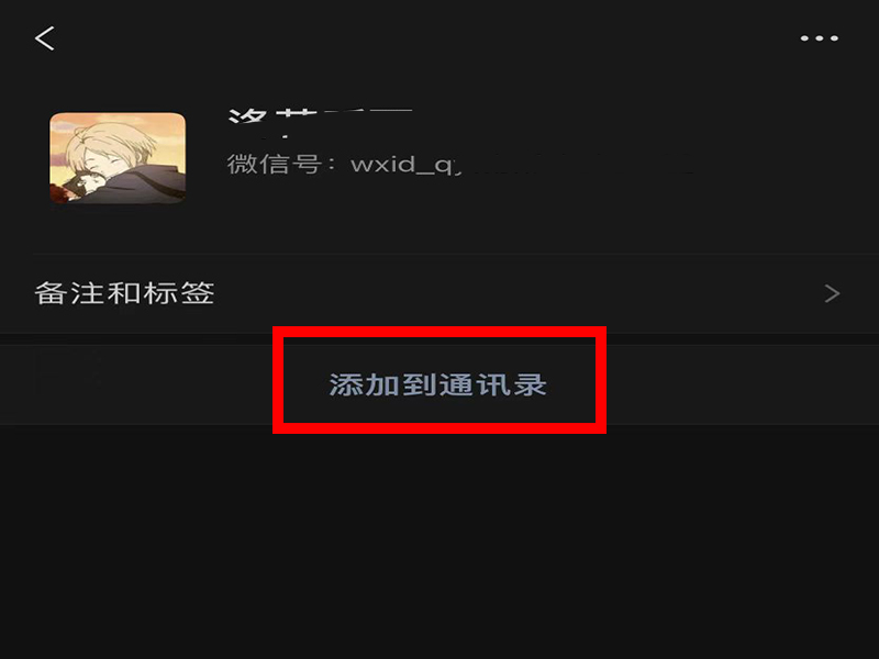 4、进入对方的资料界面后,点击“添加到通讯录”即可。