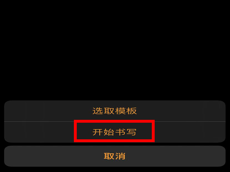 3、在下方弹出的功能栏中点击“开始书写”。