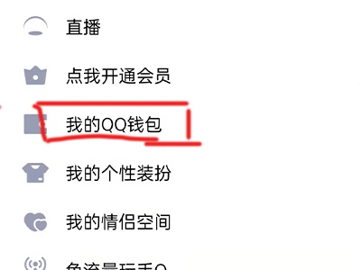 1、打开qq,右滑进入个人页面,点击我的qq钱包。