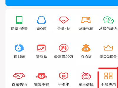 2、在qq钱包页面点击全部应用。