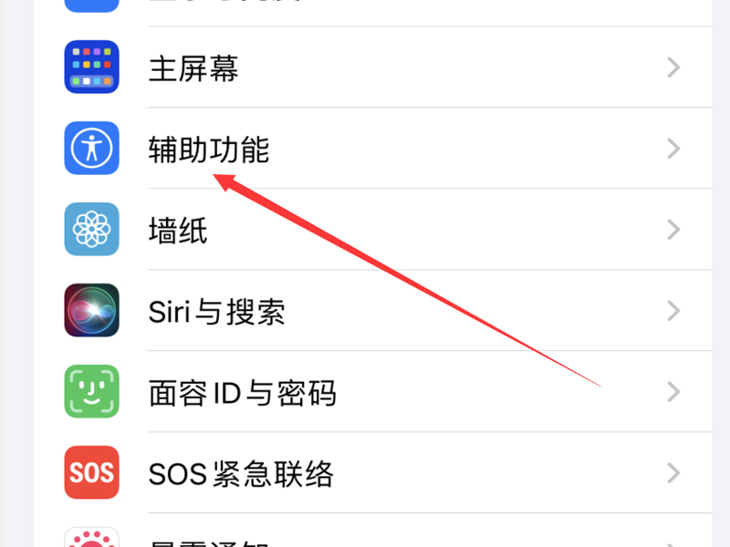 1、打开手机的设置,点击“辅助功能”按钮,进入辅助功能的设置页面。