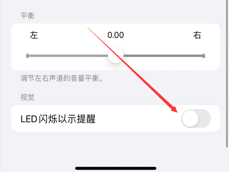 3、把“LED闪烁以示提醒”后面的开关打开即可。