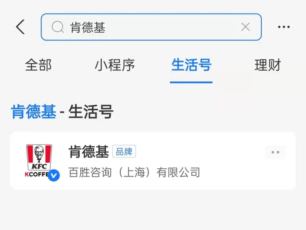 1.打开支付宝,在首页搜索栏输入“肯德基”。