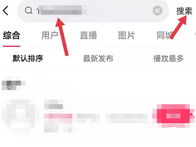 2、进入页面后,在搜索栏中输入别人id,点击搜索。