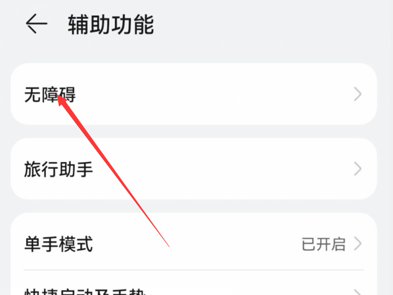 2、点击“无障碍”按钮,进入无障碍设置的页面。