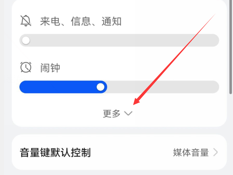 2、点击音量下面的“更多”按钮,打开隐藏栏。