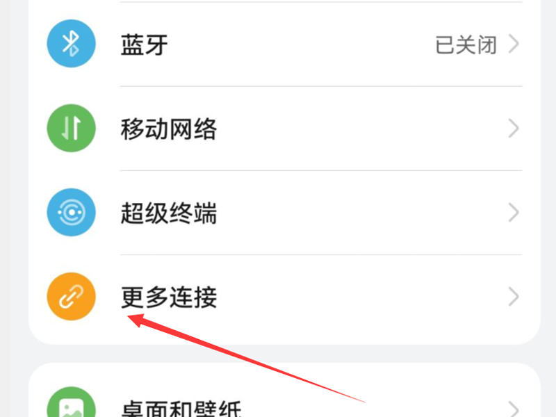 1、打开手机的设置,点击“更多连接”按钮,进入更多连接的页面中。