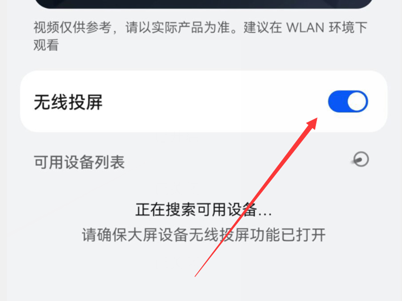 3、进入页面后打开“无线投屏”的开关,连接搜索出的电视机设备即可。