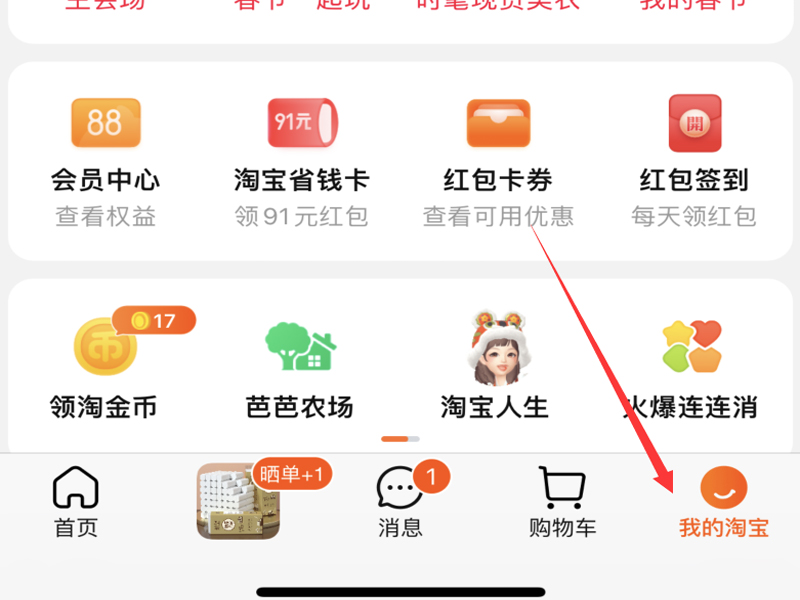 1、打开手机的淘宝app,点击右下角“我的淘宝”按钮,进入淘宝的个人中心界面。
