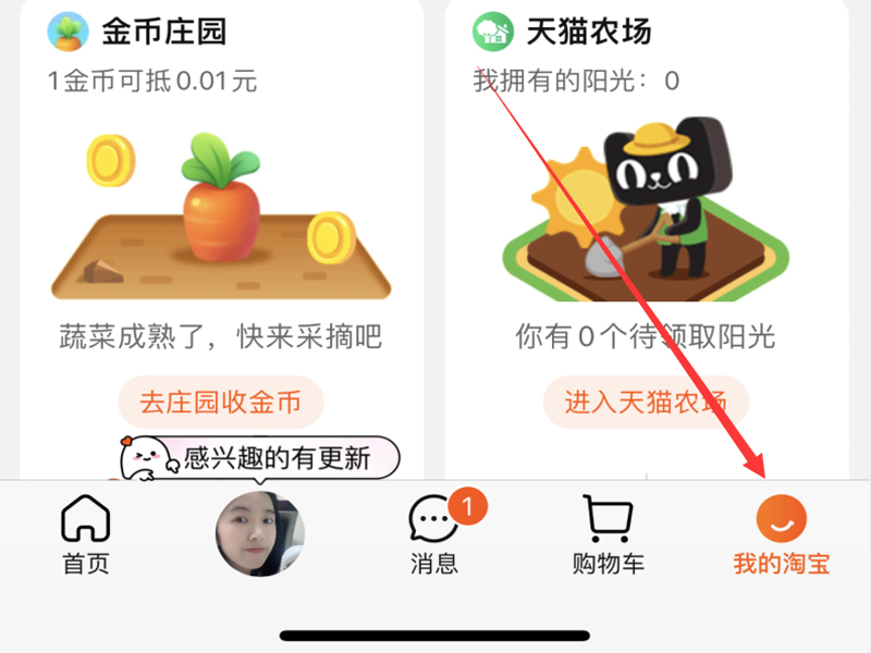 1、打开手机的淘宝app,点击右下角“我的淘宝”按钮,进入淘宝的个人中心界面。