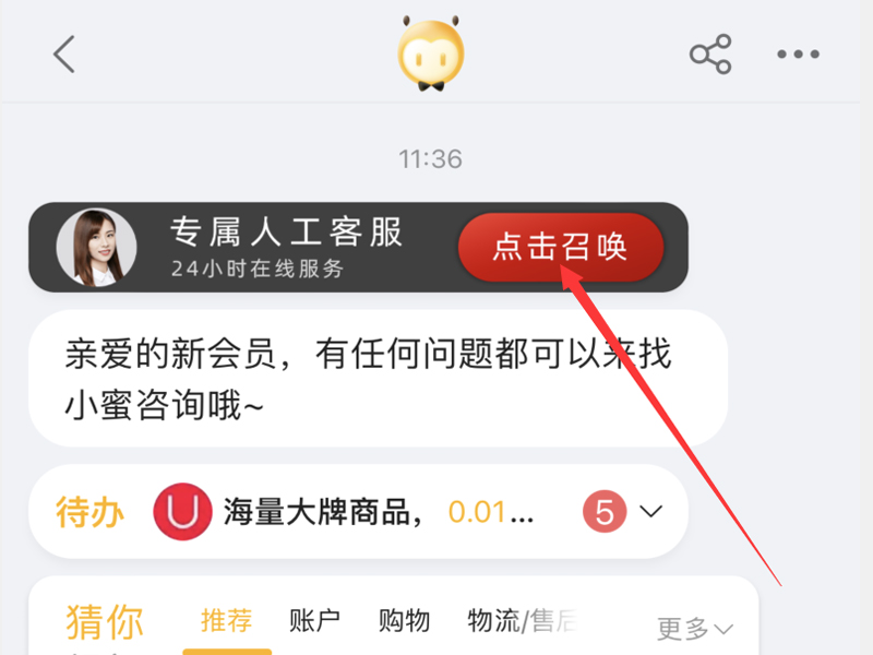 3、点击上方的“专属人工客服”,召唤出人工客服。