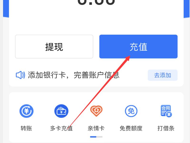 3、点击页面右上方的“充值”按钮,即可进行充值存钱。